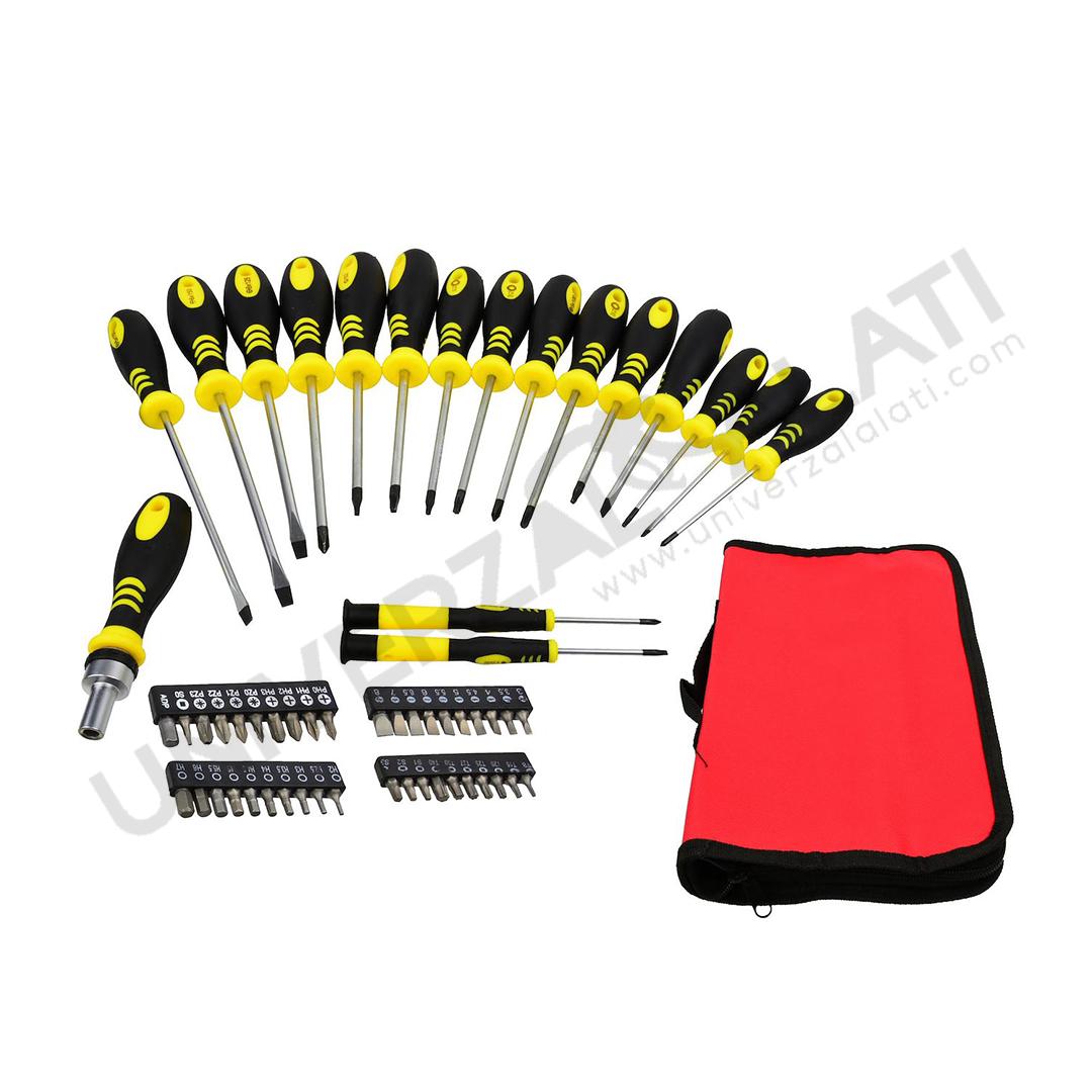 Set šrafcigera 59 kom sadrži osnovne odvijače i nastavke za svakodnevni rad u radionici, servisu ili garaži. U setu se nalaze klasični odvijači, precizni odvijači i bitovi različitih tipova.