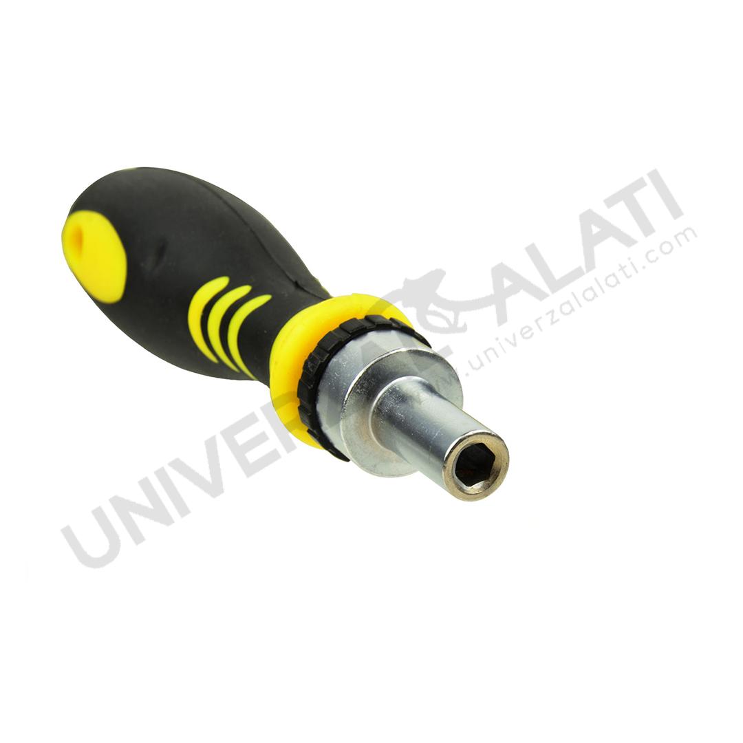 Alat je izrađen od hrom-vanadijum (CrV) čelika i koristi se za rad sa različitim vrstama šrafova. Čegrtaljka omogućava brži rad bez stalnog pomeranja ruke.