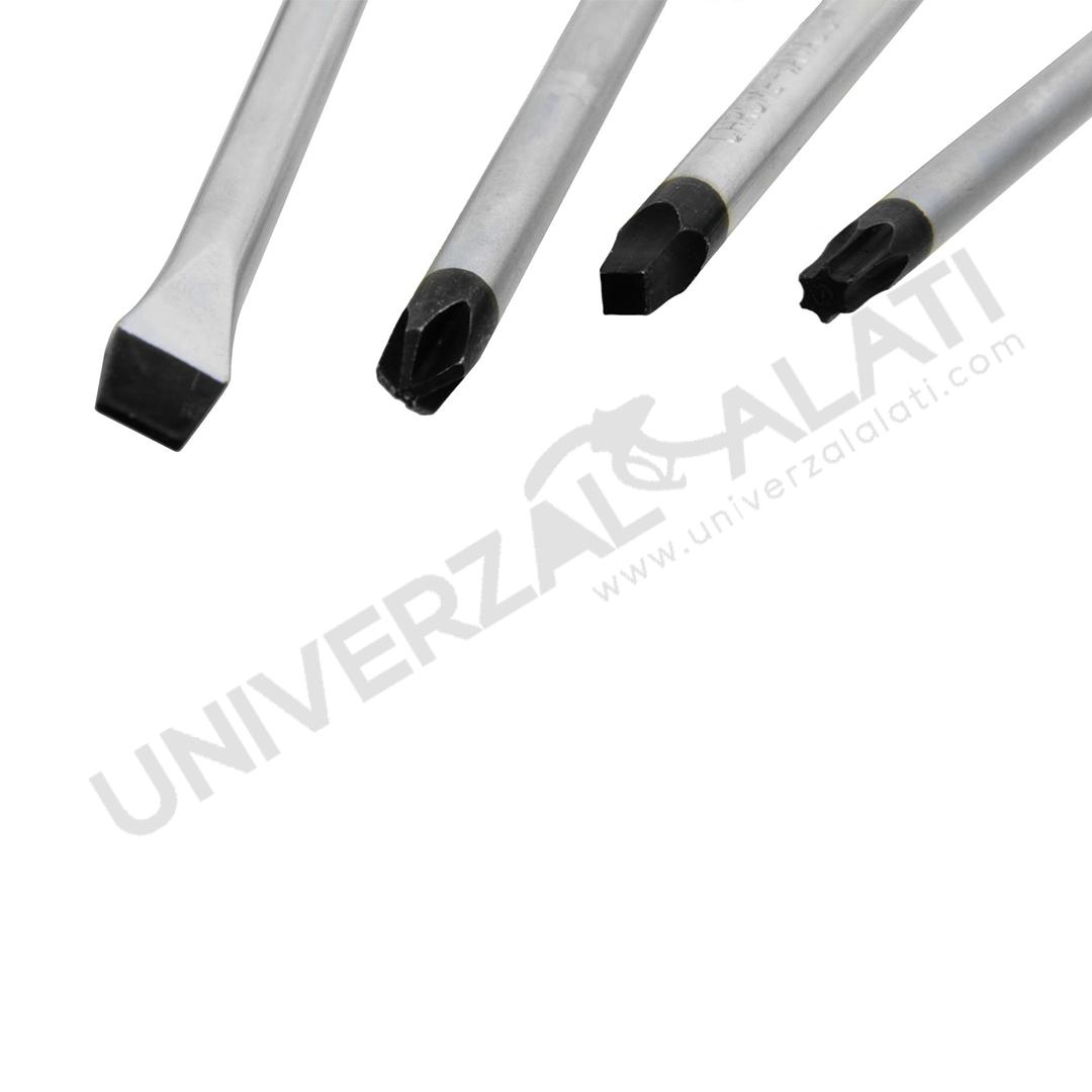 - Ravni odvijači: 3×75, 5×75, 5×150, 6×125, 6×150 mm